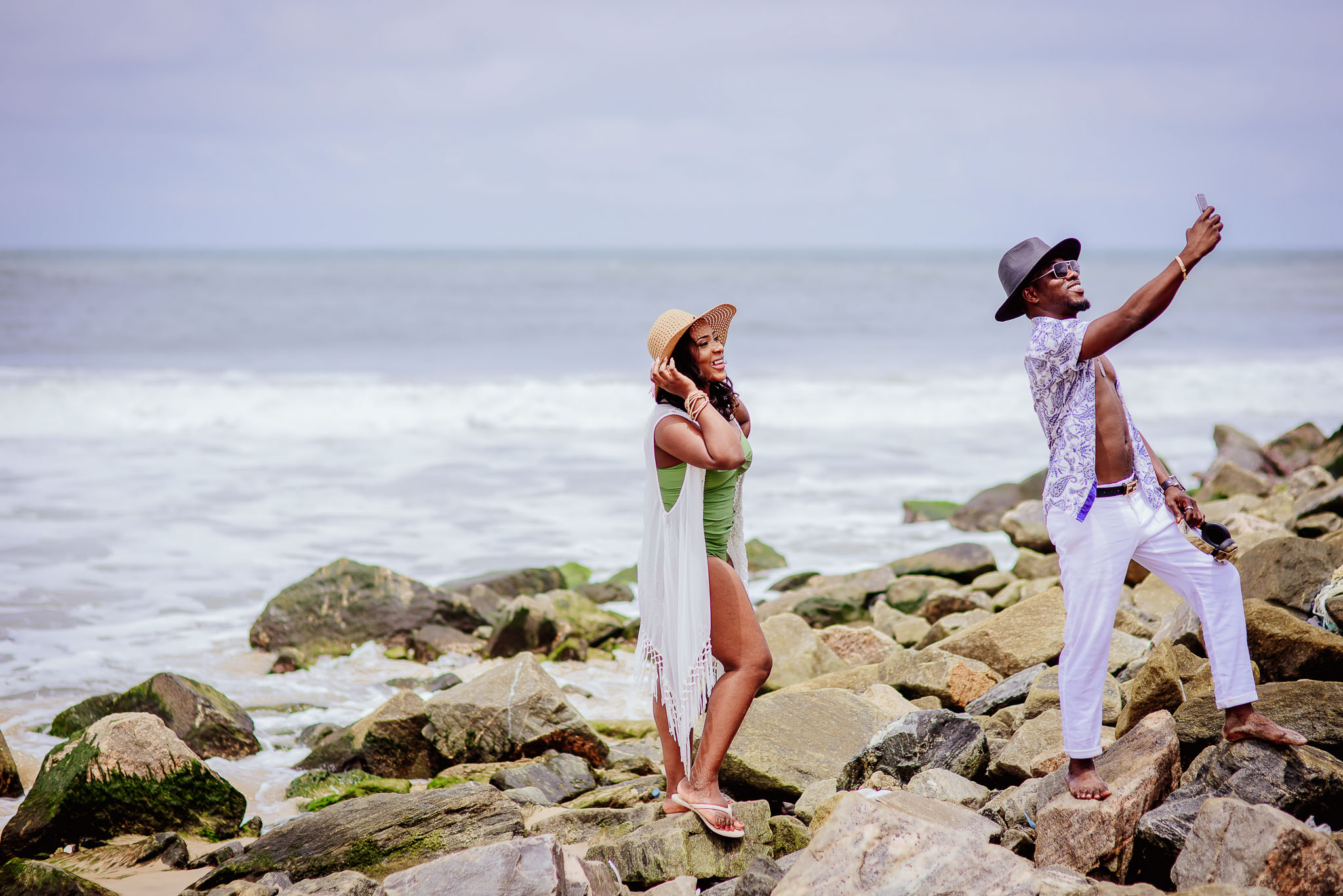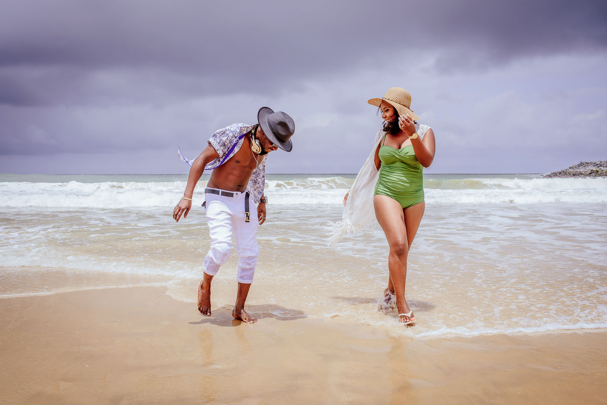 Tosin and Tunde (a.k.a “Happening Guy”)’s pre-wedding shoot was one of the first big shoots we ever did, and we enjoyed every bit of it. Although very sophisticated, Tunde was genuine and down-to-earth. We took pictures at their house and then went to the beach to take more fun shots.